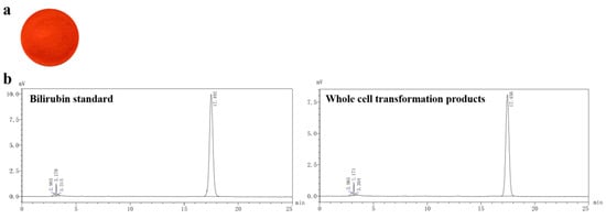 2.9. Whole-Cell Transformation of Pig Bile to Prepare Unconjugated Bilirubin