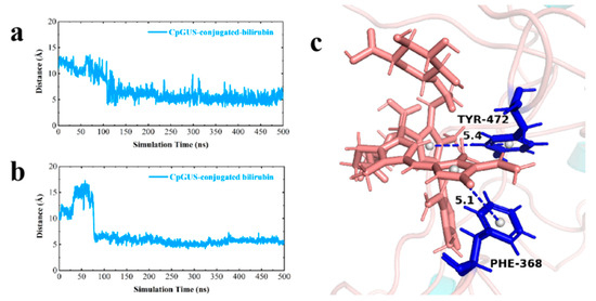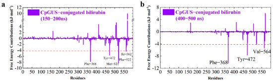 | CpGUS– Conjugated bilirubin | 150–200 | Phe368 | −13.35 | 6.86 | −1.32 | −7.80 |