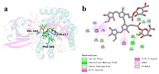 | Phe522 | −9.36 | 3.61 | −1.47 | −7.21 | ||