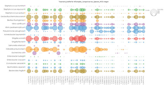 - Ondov, B.D.; Bergman, N.H.; Phillippy, A.M. Interactive metagenomic visualization in a Web browser. BMC Bioinform. 2011, 12, 385. [Google Scholar] [CrossRef]