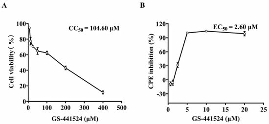 2.3. Determination of the Half Maximal Effective Concentration (EC50) of GS-441524