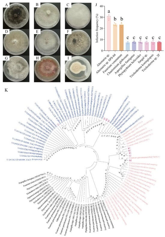 2.5. Identification of Endophytic Fungi and Construction of a Phylogenetic Tree