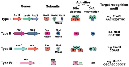 - Vasu, K.; Nagaraja, V. Diverse Functions of Restriction-Modification Systems in Addition to Cellular Defense. Microbiol. Mol. Biol. Rev. 2013, 77, 53–72. [Google Scholar] [CrossRef] [PubMed]
