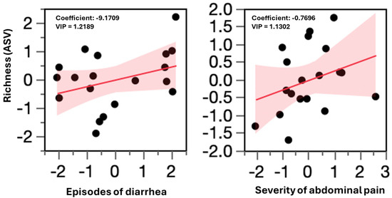 Figure 2. Correlation between gut microbiota richness and episodes of diarrhea and severe abdominal pain.