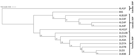 Profile clustering was performed using the Unweighted Pair Group Method with Arithmetic Means algorithm (UPGMA) and Jaccard similarity coefficients, based on the RAPD-PCR profiles alone and in combination with physiological and technological traits (milk coagulating capacity, proteolytic activity, ability to utilize lactose or citrate, and production of volatile compounds and organic acids [see below]). A dendrogram was constructed using the DendroUPGMA tool [62] to reflect intraspecies differences. The final tree was generated on the iTOL webpage [63].