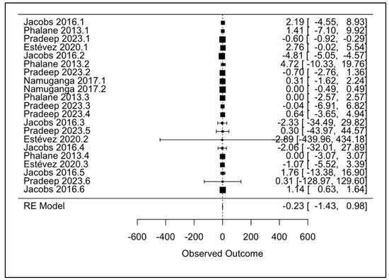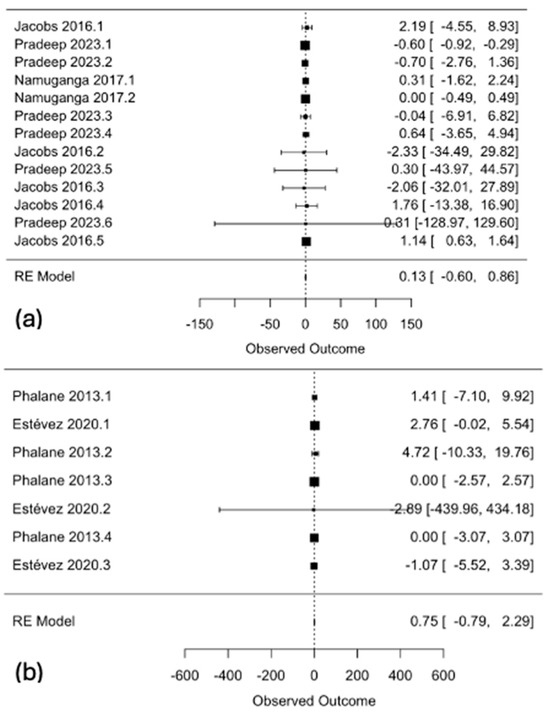 - Viechtbauer, W. Conducting Meta-Analyses in R with the metafor Package. J. Stat. Softw. 2010, 36, 1–48. [Google Scholar] [CrossRef]