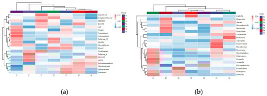 Cluster analysis of bacteria (a) and fungi (b) in different soil treatments at the genus level.