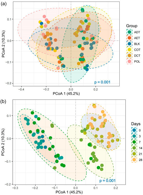 - Caporaso, J.G.; Kuczynski, J.; Stombaugh, J.; Bittinger, K.; Bushman, F.D.; Costello, E.K.; Fierer, N.; Peña, A.G.; Goodrich, J.K.; Gordon, J.I.; et al. QIIME allows analysis of high-throughput community sequencing data. Nat. Methods 2010, 7, 335–336. [Google Scholar] [CrossRef]
