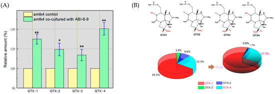 3.7. Promotion of the Accumulation of Algal GTXs by Algal–Bacterial Co-Culture