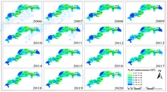 Spatial distribution of N2O from 2006 to 2020.
