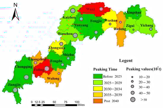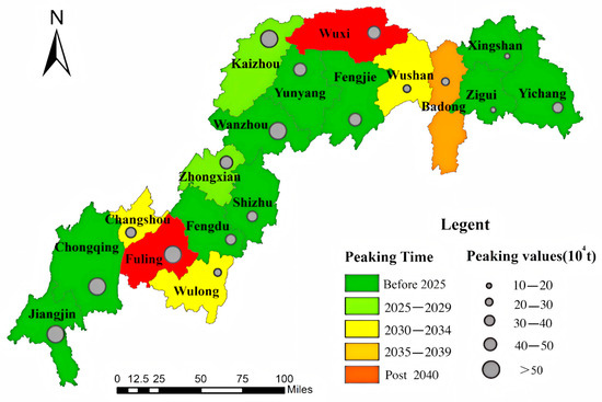 The optimal carbon peak pathway for each district and county in the Three Gorges Reservoir.