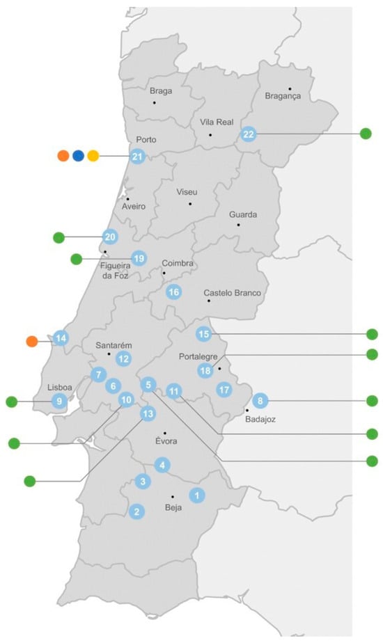 Forty-three cyanobacterial strains previously isolated from Portuguese surface freshwaters and from a wastewater treatment plant (WWTP) were studied (Supplementary Figure S1). Among these strains, 31 were isolated from 20 surface freshwater reservoirs, 4 from 2 rivers and 8 from a WWTP secondary decanter tank. The freshwater strains were isolated between 1996 and 2015, being maintained since then at the “Estela Sousa e Silva Algae Culture Collection” (Laboratory of Biology and Ecotoxicology, National Institute of Health_INSA, Lisbon, Portugal) [20]. The wastewater strains were isolated between 2006 and 2007 and belong to the “LEGE Culture Collection” (Laboratory of Ecotoxicology, Genomics and Evolution, Interdisciplinary Centre of Marine and Environmental Research_CIIMAR, Porto, Portugal) [21,22] (https://lege.ciimar.up.pt/, accessed on 21 May 2025).