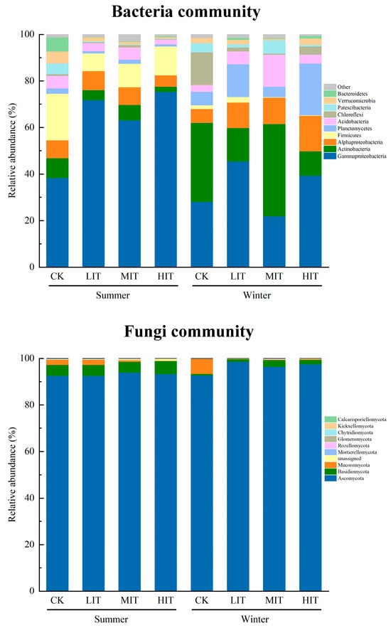 - Hu, Y.; Chen, M.; Yang, Z.; Cong, M.; Zhu, X.; Jia, H. Soil Microbial Community Response to Nitrogen Application on a Swamp Meadow in the Arid Region of Central Asia. Front. Microbiol. 2021, 12, 797306. [Google Scholar] [CrossRef] [PubMed]