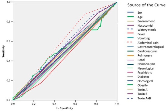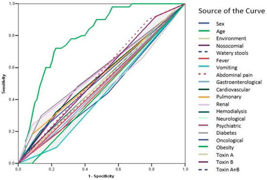 ROC curves were utilized to assess the predictive value of various parameters for recurrence of CDI. The AUC for these parameters was found to be less than 0.700, indicating inadequate predictive value for recurrence. In contrast, age emerged as a significant predictor of mortality in CDI patients. Identification of age as a significant predictor of mortality aligns with the existing literature. Advanced age has been consistently associated with increased mortality risk in various clinical settings [13,49,66,67].
