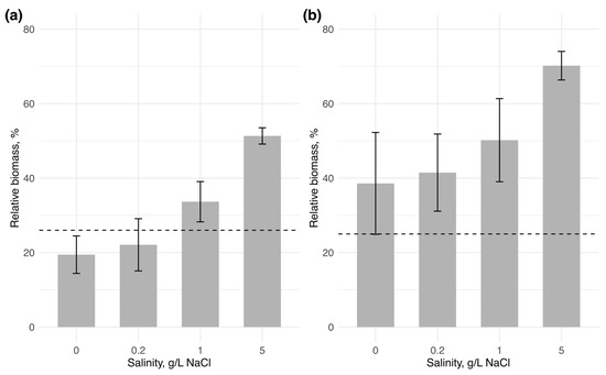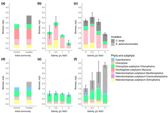- Flöder, S.; Jaschinski, S.; Wells, G.; Burns, C.W. Dominance and Compensatory Growth in Phytoplankton Communities under Salinity Stress. J. Exp. Mar. Bio. Ecol. 2010, 395, 223–231. [Google Scholar] [CrossRef]