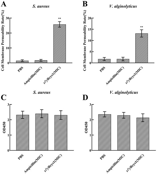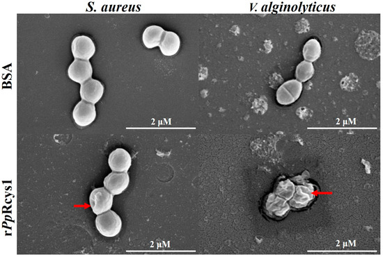 3.8. Effects of rPpRcys1 on Bacterial Morphology