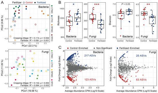 - Wang, L.M.; Huang, D.F. Soil microbial community composition in a paddy field with different fertilization managements. Can. J. Microbiol. 2021, 67, 864–874. [Google Scholar] [CrossRef]
