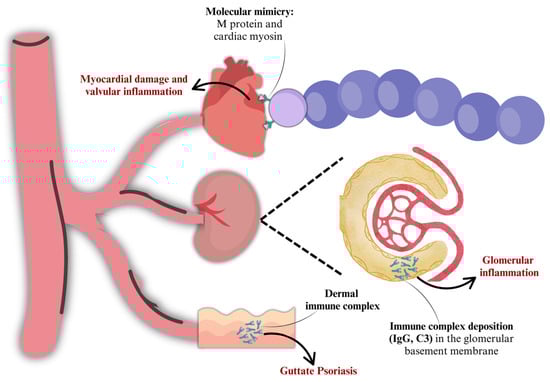 In this review, we will present the general characteristics of GAS, highlighting its structural and microbiological features. We will also discuss its pathogenetic mechanisms, especially molecular mimicry, and its ability to cause autoimmune responses. Finally, we will elucidate some of the autoimmune sequelae that mark GAS infections, such as ARF, RHD, APSGN, and guttate psoriasis.