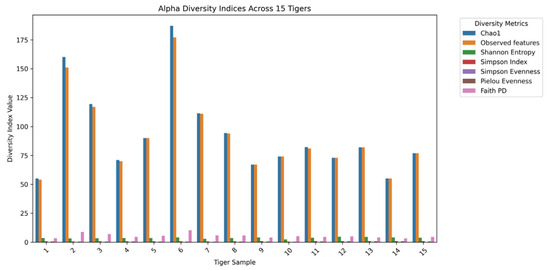 - Khairulmunir, M.; Gani, M.; Mohd-Ridwan, A.R.; Karuppannan, K.V.; Abdul-Latiff, M.A.B.; Md-Zain, B.M. Alteration of the gut microbial composition of critically endangered Malayan tigers (Panthera tigris jacksoni) in captivity during enrichment phase. Mol. Biol. Rep. 2024, 51, 742. [Google Scholar] [CrossRef]
