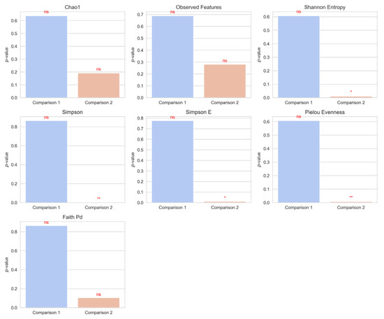 - Bolyen, E.; Rideout, J.R.; Dillon, M.R.; Bokulich, N.A.; Abnet, C.C.; Al-Ghalith, G.A.; Alexander, H.; Alm, E.J.; Arumugam, M.; Asnicar, F.; et al. Reproducible, interactive, scalable and extensible microbiome data science using QIIME 2. Nat. Biotechnol. 2019, 37, 852–857. [Google Scholar] [CrossRef]