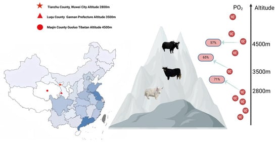 Yaks, a unique livestock species of the Qinghai-Tibet Plateau, are significantly affected by the cold, hypoxic environment, exhibiting clear seasonal characteristics. Slaughter typically occurs during the cold season. The dry season provides relatively stable nutritional and environmental conditions, allowing us to focus on studying the effects of altitude while minimizing seasonal influences.