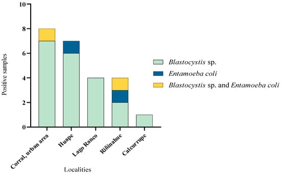 Blastocystis sp. was found in every positive site and the sampling point with the highest number of positive samples was the Corral urban area (Figure 4).