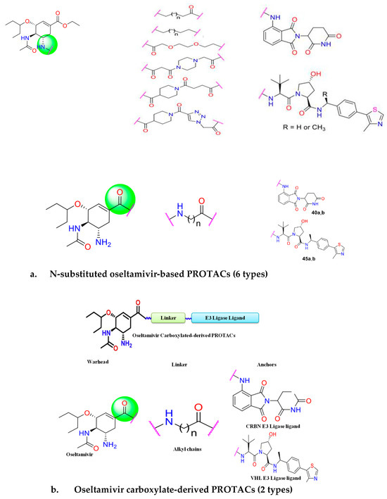 - Xu, Z.; Liu, X.; Ma, X.; Zou, W.; Chen, Q.; Chen, F.; Deng, X.; Liang, J.; Dong, C.; Lan, K.; et al. Discovery of oseltamivir-based novel PROTACs as degraders targeting neuraminidase to combat H1N1 influenza virus. Cell Insight 2022, 1, 100030. [Google Scholar] [CrossRef]