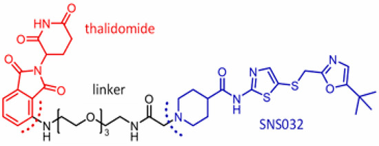 Illustrating cyclin-dependent kinase-based PROTAC 9 (THAL-SNS032, SN032–linkers–thalidomide (Cereblon)): protein of interest = cyclin-dependent kinase.