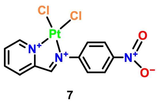 Structural representation of a Pt(II) complex with a 2-(4-nitrophenyl) imidazopyridinedione ligand Complex 7 [28].