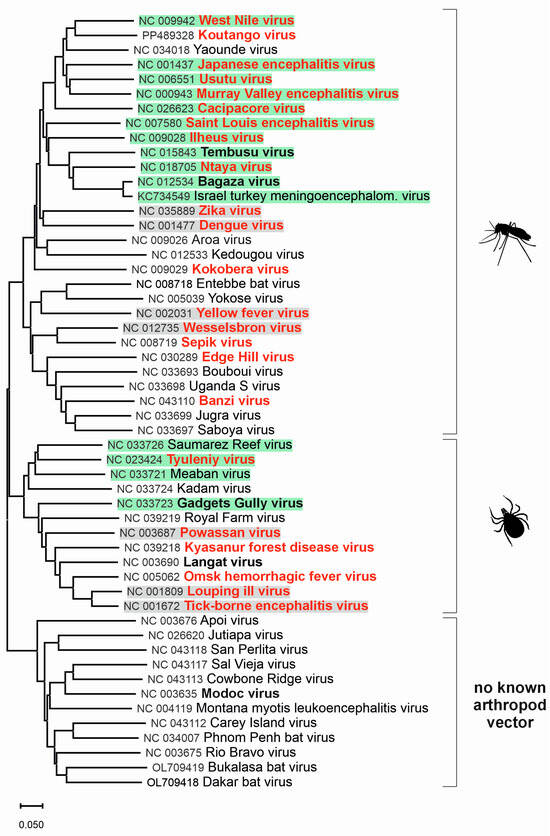 - Nelson, A.N.; Ploss, A. Emerging Mosquito-Borne Flaviviruses. mBio 2024, 15, e0294624. [Google Scholar] [CrossRef]