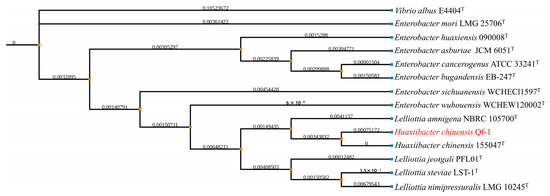 - He, Y.; Wu, S.; Feng, Y.; Zong, Z. Huaxiibacter chinensis gen. nov., sp. nov., recovered from human sputum. Int. J. Syst. Evol. Microbiol. 2022, 72, 005484. [Google Scholar] [CrossRef] [PubMed]