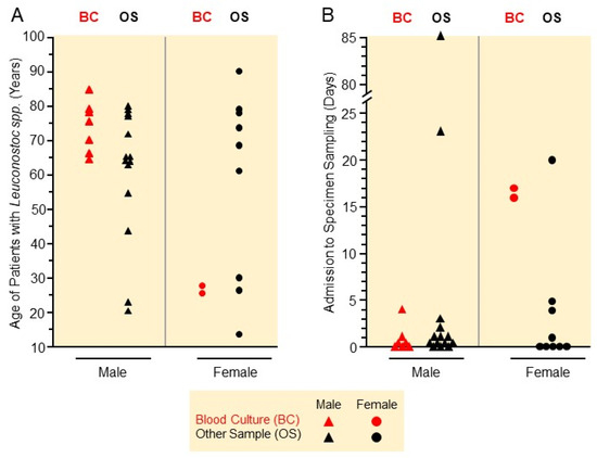 APA StyleButt, J., Arva, C., & Borgmann, S. (2025). Both, Limited and Often Fatal Systemic Infections Caused by Leuconostoc spp. in Older, Previously Ill Men Are Usually Acquired in the Outpatient Setting. Microorganisms, 13(7), 1626. https://doi.org/10.3390/microorganisms13071626