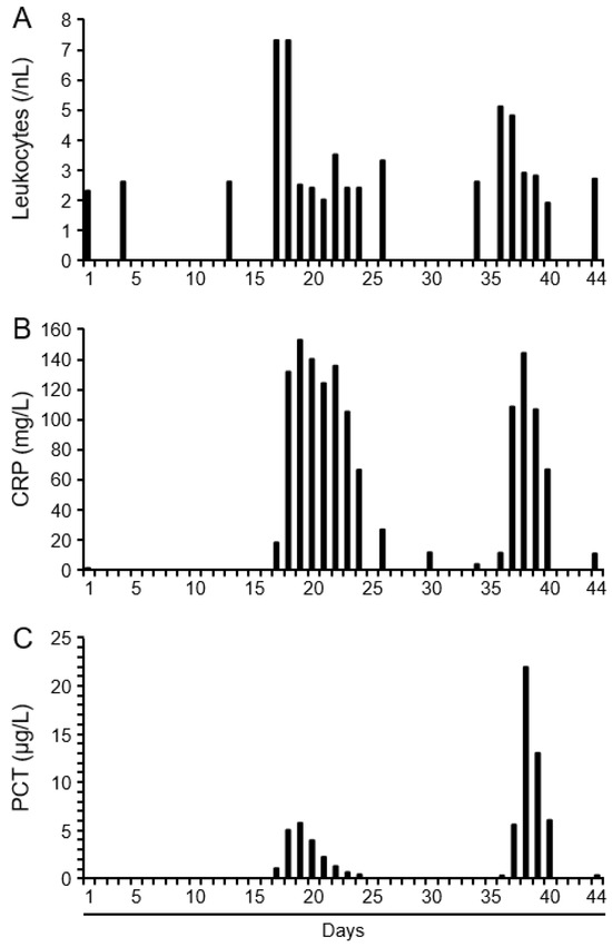 - Ino, K.; Nakase, K.; Suzuki, K.; Nakamura, A.; Fujieda, A.; Katayama, N. Bacteremia due to Leuconostoc pseudomesenteroides in a Patient with Acute Lymphoblastic Leukemia: Case Report and Review of the Literature. Case Rep. Hematol. 2016, 2016, 7648628. [Google Scholar] [CrossRef]
