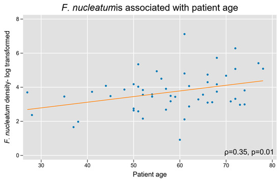We assessed whether Fn density was associated with baseline patient characteristics. Increasing patient age was associated with a high Fn density (Spearman’s r = 0.3, p = 0.01; Figure 4). Fn density was not related to biological sex, and our cohort did not have sufficient racial diversity to power a subgroup analysis based on race.