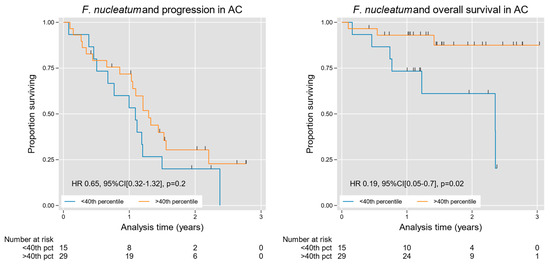 Association of F. nucleatum content with tumor progression and survival in AC. Fn, Fusobacterium nucleatum; HR, hazard ratio; CI, confidence interval.