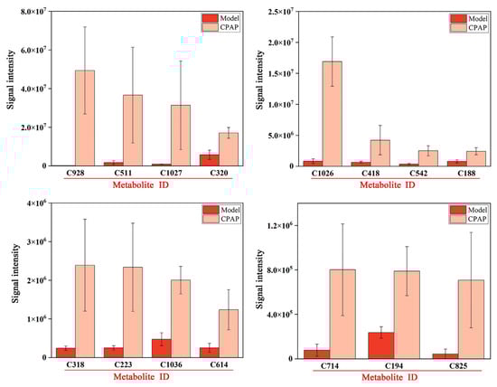The expressions of 15 specific metabolites were significantly improved in the CPAP group compared with the model group, and the results are shown in Figure 4.