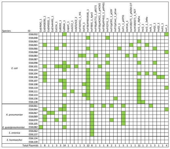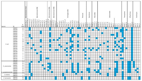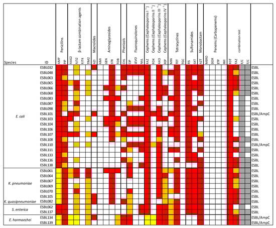 3.2. Antimicrobial Resistance Profiles of the ESBL-Producing Enterobacteriaceae Isolates