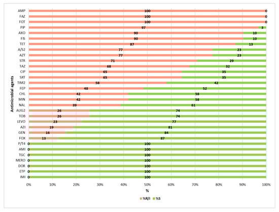 - Weinstein, M.P. (Ed.) Performance Standards for Antimicrobial Susceptibility Testing, 31st ed.; Clinical and Laboratory Standards Institute: Wayne, PA, USA, 2021; ISBN 978-1-68440-104-8. [Google Scholar]