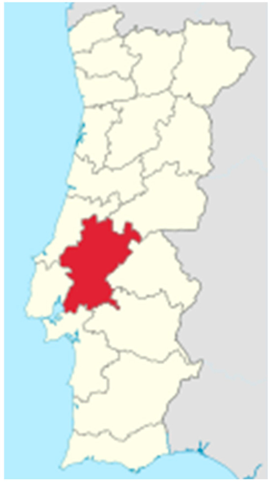 Figure 1. District of Santarém (Portugal). Located in the Lisboa and Vale do Tejo region, it spans an area of 6747 km2 and has a population density of approximately 64 inhabitants per km2.