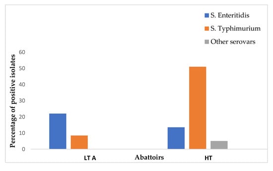 | HT | S. Typhimurium | 6.5 (2/31) | 0 (0) | 0 (0) | 0 (0) | 0 (0) | 48.4 (15/31) | 0 (0) | 0 (0) | 0 (0) | 0 (0) |