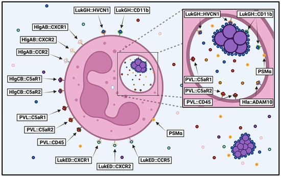 - Spaan, A.N.; Van Strijp, J.A.G.; Torres, V.J. Leukocidins: Staphylococcal Bi-Component Pore-Forming Toxins Find Their Receptors. Nat. Rev. Microbiol. 2017, 15, 435–447. [Google Scholar] [CrossRef]