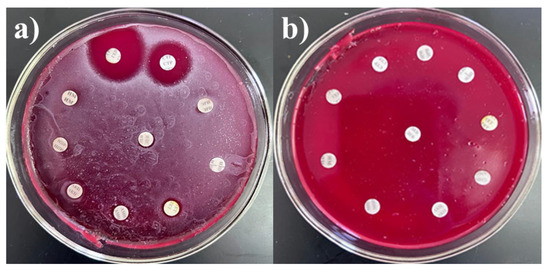 Biocompatibility was assessed in vitro by evaluating the co-growth or mutual inhibition of drug-resistant strains. The exponential culture of the investigated strain was streaked onto the surface of an agar medium in a Petri dish, and other cultures were subsequently inoculated perpendicularly. Incubation was carried out at 37 °C for 18–24 h [38].