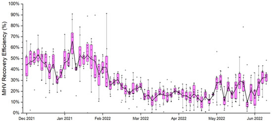 Data analyses were performed using MS Excel program, OriginPro 2025b (OriginLab Corporation, Northampton, MA, USA), and RStudio 2025.05.1+513 (Posit Software, PBC, Boston, MA, USA). Mann–Whitney U Test, a non-parametric statistical test, was performed to compare the MHV recovery efficiency between samples categorized into different water quality groups. Multiple regression tests were performed in R, and all other statistical tests were performed in OriginPro. A p-value of <0.05 was considered significant.