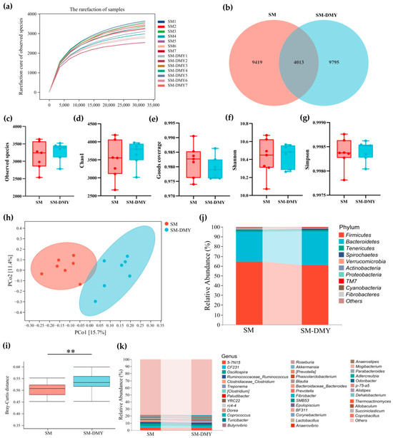 3.3. Effects of Dietary DMY Supplementation on the Diversity and Taxonomic Composition of Gut Microbiota