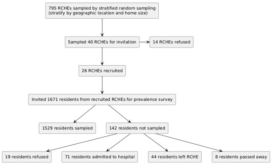 Flowchart illustrating the recruitment results of Residential Care Homes for the Elderly (RCHEs) and residents.
