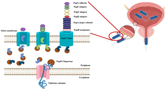 - Behzadi, P. Classical chaperone-usher (CU) adhesive fimbriome: Uropathogenic Escherichia coli (UPEC) and urinary tract infections (UTIs). Folia Microbiol. 2020, 65, 45–65. [Google Scholar] [CrossRef]