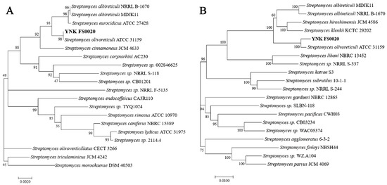 3.6. Comparative Genomic Analysis of Strain YNK-FS0020