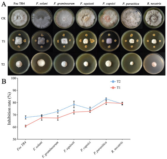 - Wei, J.; Zhao, J.; Suo, M.; Wu, H.; Zhao, M.; Yang, H. Biocontrol mechanisms of Bacillus velezensis against Fusarium oxysporum from Panax ginseng. Biol. Control 2023, 182, 105222. [Google Scholar] [CrossRef]