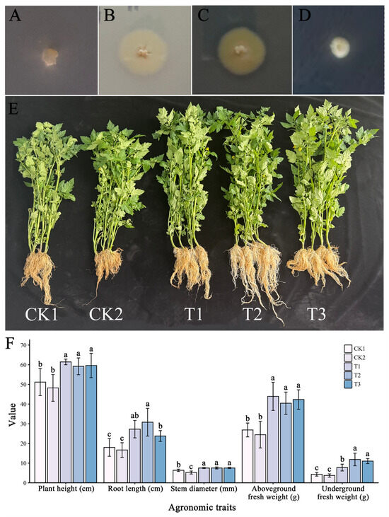 2.6. Determination of Growth-Promoting Effect of Strain YNK-FS0020 on Greenhouse Tomato Seedlings
