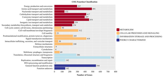 3.7.1. Results of Gene Analysis in COG Database for Strain YNK-FS0020
